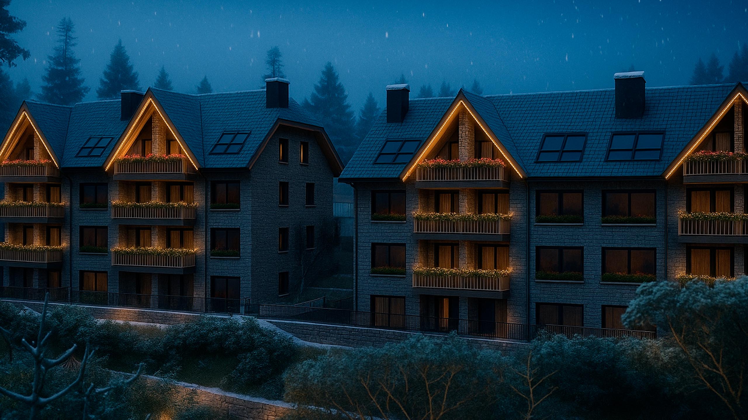 Ocho hogares de estilo aranés vanguardista que despliegan 430 m² de vida en calma, cinco plantas unidas por un ascensor privado que te acompaña desde el primer café hasta la última sonrisa del día. En el gran salón con chimenea y cocina abierta, la luz invade los espacios y acoge las reuniones de amigos o familia junto al fuego y sobremesas que se alargan sin mirar el reloj. Arriba, de 5 a 7 dormitorios en suite dibujan refugios íntimos para cada miembro de la familia, repletos de silencio, comodidad y esa sensación de privacidad que convierte la noche en una experiencia única de descanso.
